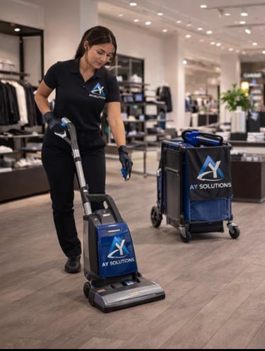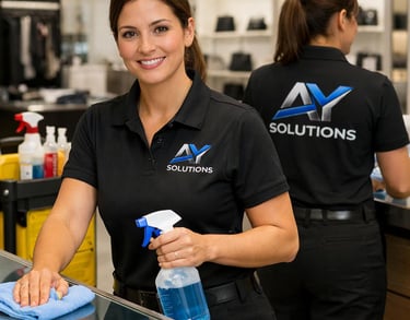 AY Solutions delivers reliable janitorial and facility maintenance services for commercial buildings, corporate offices, healthcare facilities, and government institutions. Our team focuses on consistency, safety, and high cleaning standards.